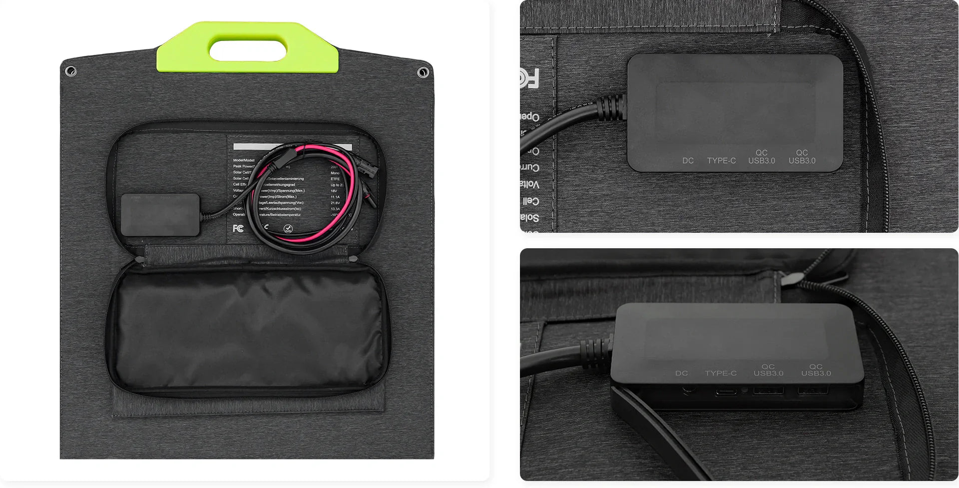 - Easy Setup with Kickstand – Sturdy stand for an easy solar charging setup outdoors.