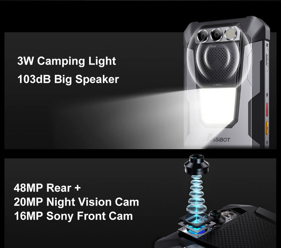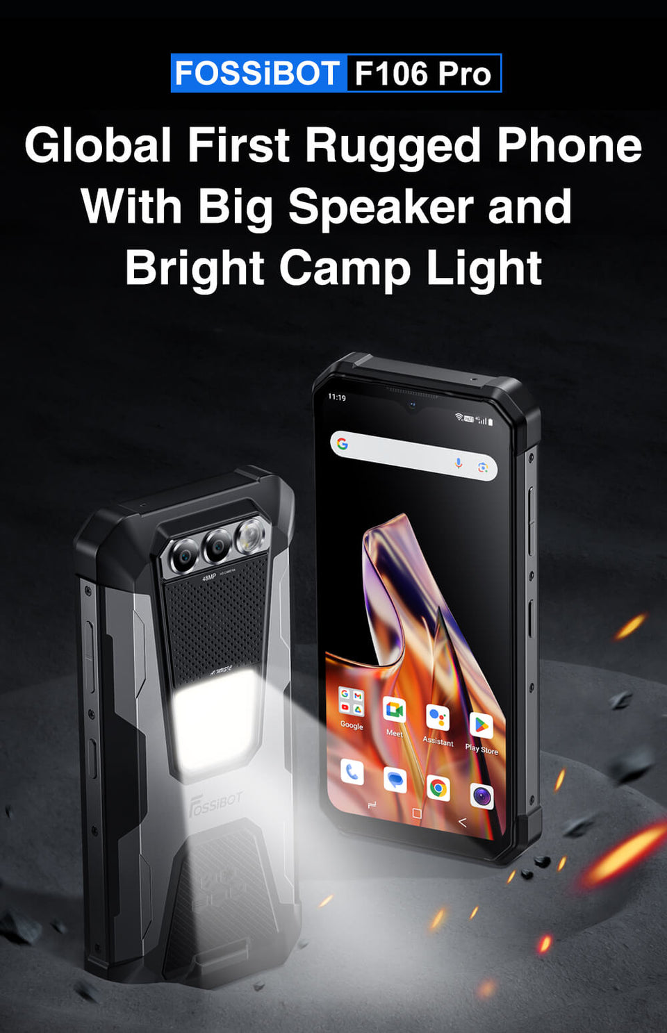 FOSSiBOT F106 Pro 15GB+256GB 103db Big Speaker 3W Camping lights 12000mAh 6.58-Inch Rugged Phone
