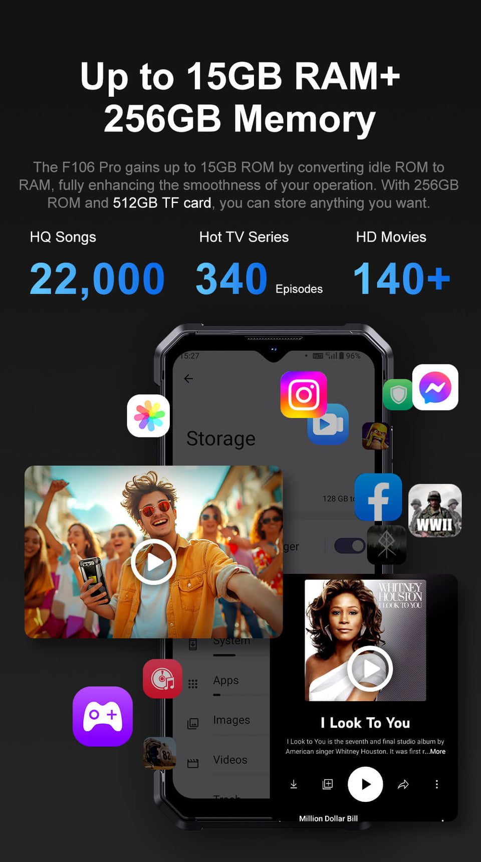 ✔15GB RAM (8GB+Up to 7GB Extended RAM)