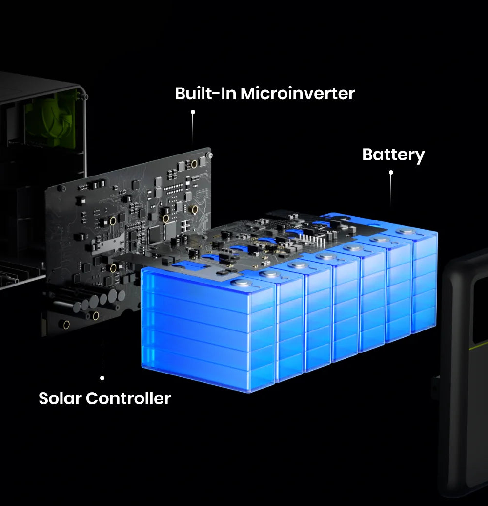 A: No microinverter is required because the microinverter is already integrated into the all-in-one design, which also includes the PV controller and the energy storage battery.