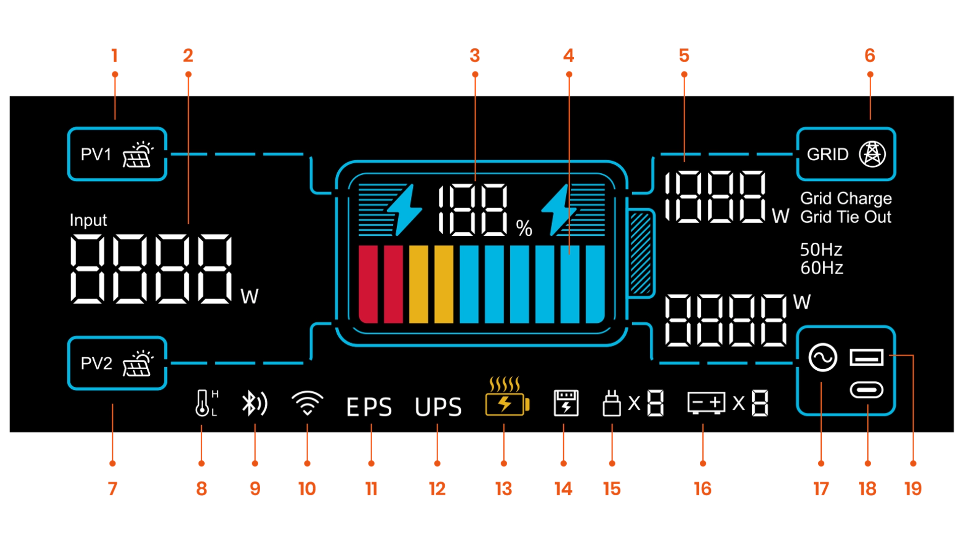 - 1200W AC Input: Supports up to 1200W grid power for fast and efficient charging of the FBP1200, significantly reducing charging time.